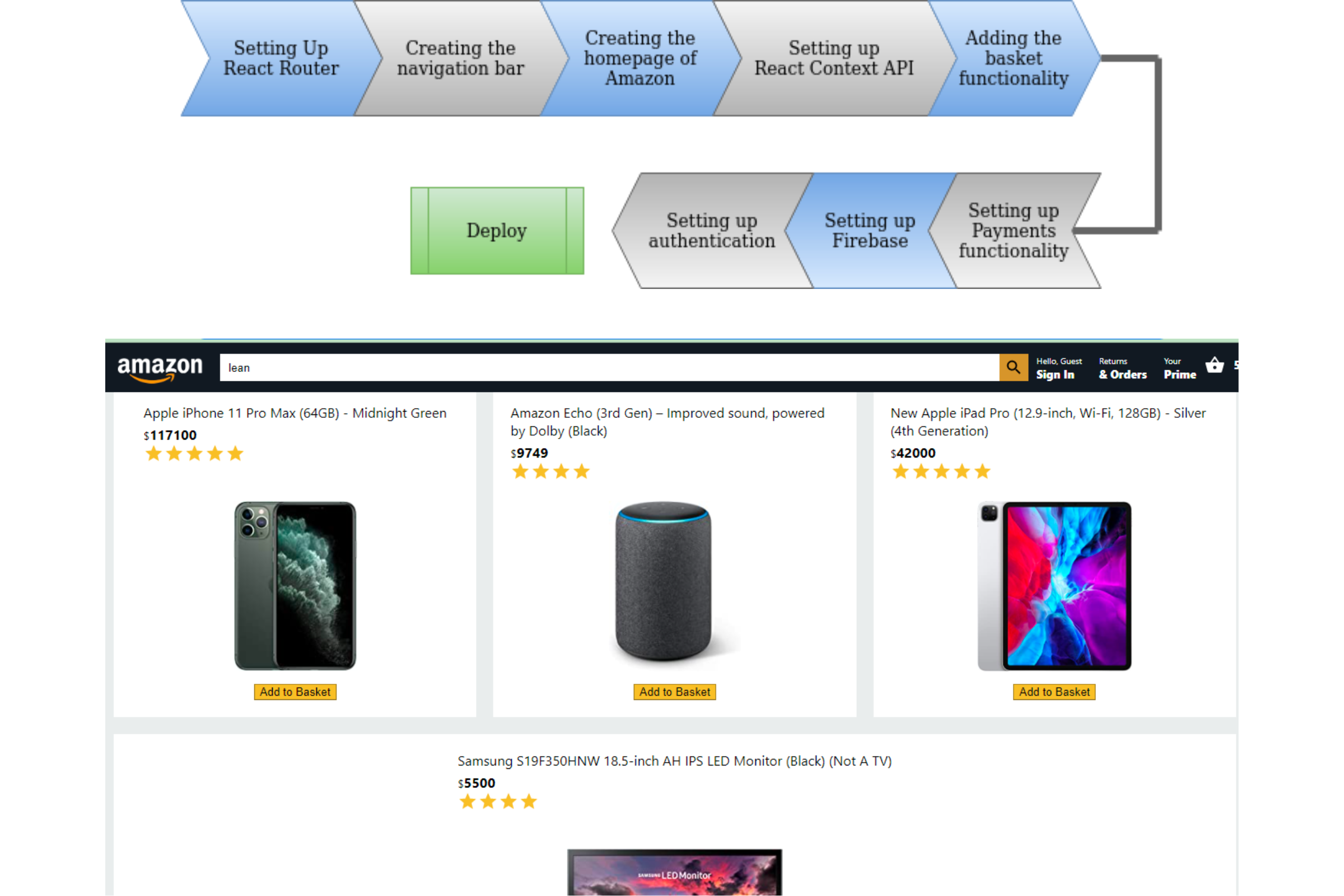 Using ReactJS and Firebase, I built an Amazon app clone.